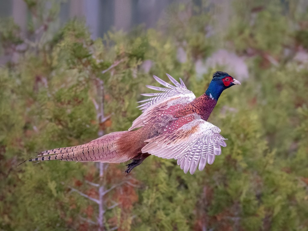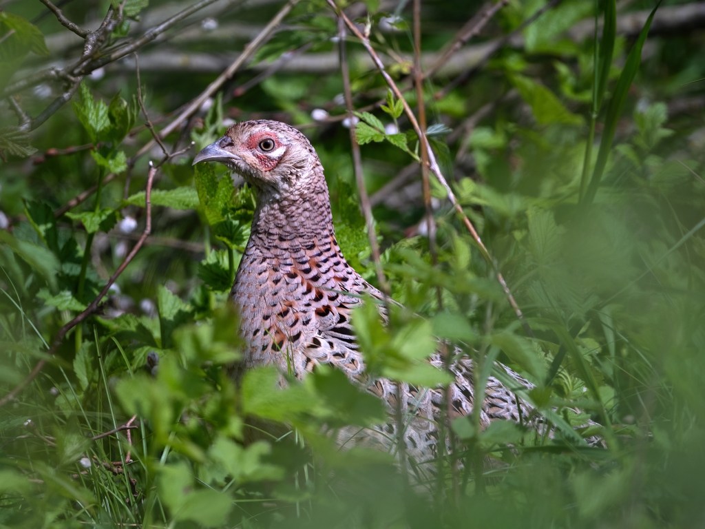 Der Fasan (Phasianus colchicus) bewohnt Ackerland und Wiesen mit Gebüschen und Feldgehölzen, welche ihm Deckung bieten. Der Vogel ist ganzjährig zu sehen und brütet von April bis September. Der bis zu 90cm große Vogel (Spannweite 70-90cm) wurde wahrscheinlich bereits zur Römerzeit in Europa zu Jagdzwecken eingebürgert. Seine eigentliche Heimat liegt in Asien.