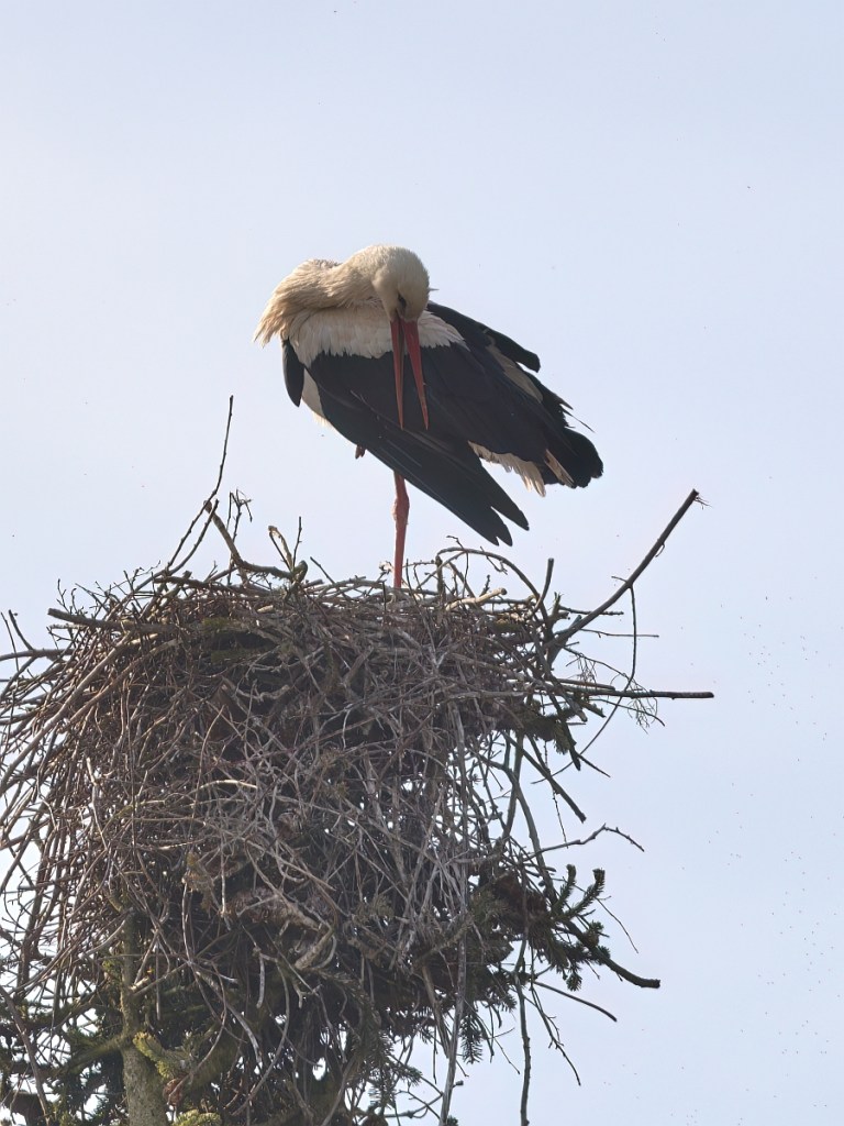 In Oberösterreich ist der Weißstorch ein sehr seltener Brutvogel mit maximal 7 bekannten Brutpaaren. Im Frühjahr 2023 gab es auch bei uns in der Nähe einen Brutversuch, welcher leider wieder abgebrochen wurde (siehe Bild unten links).